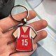 Questo portachiavi a forma di maglietta personalizzato è un regalo perfetto per tutti gli appassionati di calcio. Puoi personalizzarla su entrambi i lati in modo diverso. In questo modo potrai personalizzare la maglietta con il nome e il numero del tuo calciatore preferito, con lo scudo della tua squadra del cuore, con una tua foto, ecc.