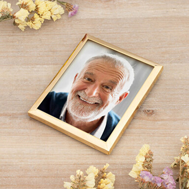 Le fotoceramiche, o foto per lapidi possono essere personalizzate con una foto o un testo e sono pensate per resistere per decenni all’esterno. Sono disponibili in diverse forme e grandezze, sia con cornice e piede d’appoggio che senza.