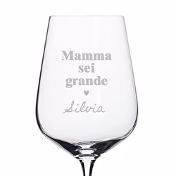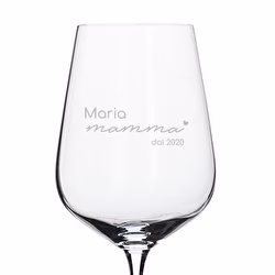 In questa collezione troverai design pensati per emozionare, con frasi come “Mamma sei fantastica” o composizioni semplici e raffinate incise direttamente sul vetro. Puoi personalizzare ogni bicchiere con il suo nome, una data speciale o un messaggio unico.