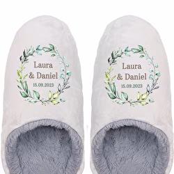 Un altro grande punto di forza è la personalizzazione. Le pantofole possono essere personalizzate con la data del matrimonio, i nomi degli sposi, iniziali, frasi divertenti o romantiche, oppure scegliendo tra i diversi design disponibili in questa categoria. Dai modelli eleganti e minimal a quelli più informali, floreali o con messaggi speciali, esiste una soluzione perfetta per ogni coppia e per ogni stile di matrimonio. Puoi anche abbinarle al tema della cerimonia, ai colori della decorazione o all’atmosfera che desideri trasmettere ai tuoi invitati.